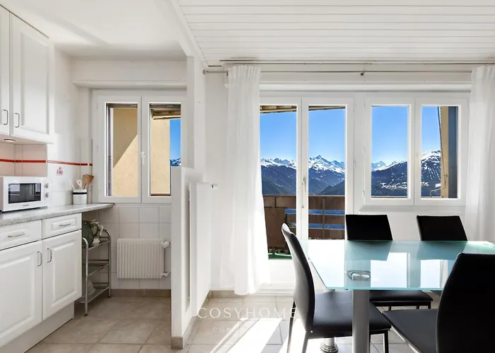 Tijdens hun verblijf in 1-slaapkamer Le Maria L Vue Splendide L By Cosyhome Crans-Montana appartement, kunnen gasten de Funitel Violettes-Plaine Morte bezoeken, gelegen op op 2 km afstand. Fietsen zijn beschikbaar om te huren en de omgeving te verkennen.